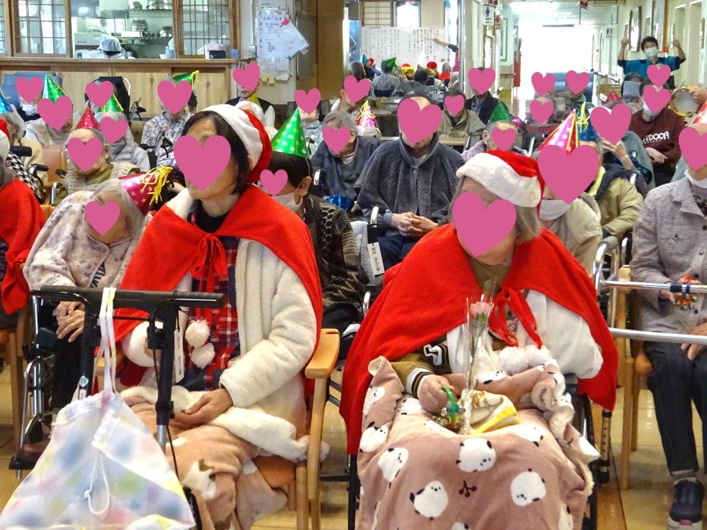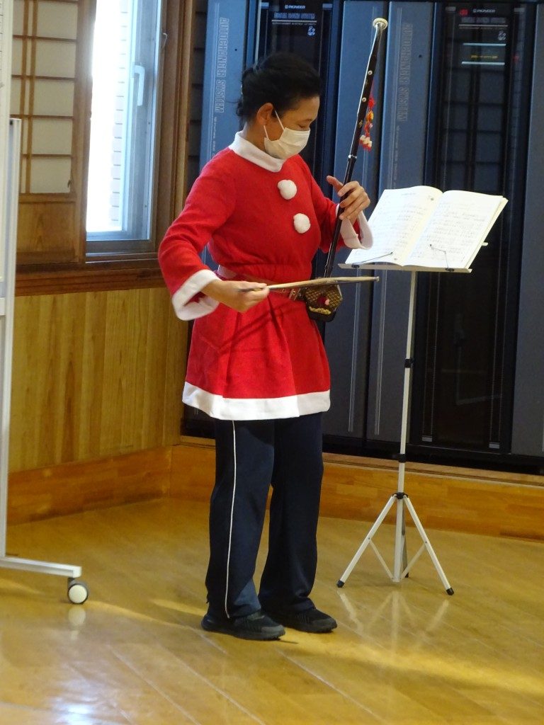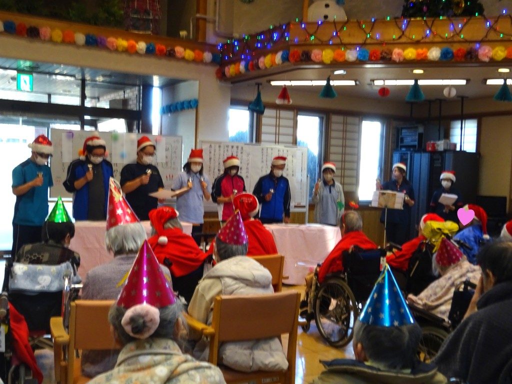 みなさんで、きよしこの夜、ジングルベルを歌い🎵サニーサンタさんがプレゼント🎁を届けに来てくれ、大変喜ばれていました😊職員によるハンドベル、二胡の演奏もあり、楽しいクリスマス会となりました🎄